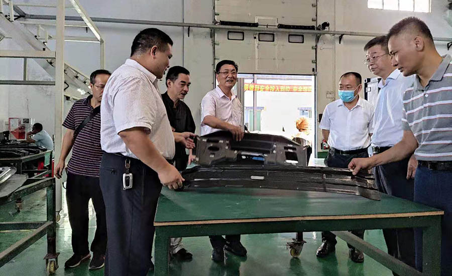 温树斌局长对亚太新项目十分关注,向董事长了解碳纤维复合材料汽车零部件产业化、部件配套的客户、现有的订单和市场布局情况;深入汽车雨刮线制造车间了解第一次成功转型升级产品制造情况。