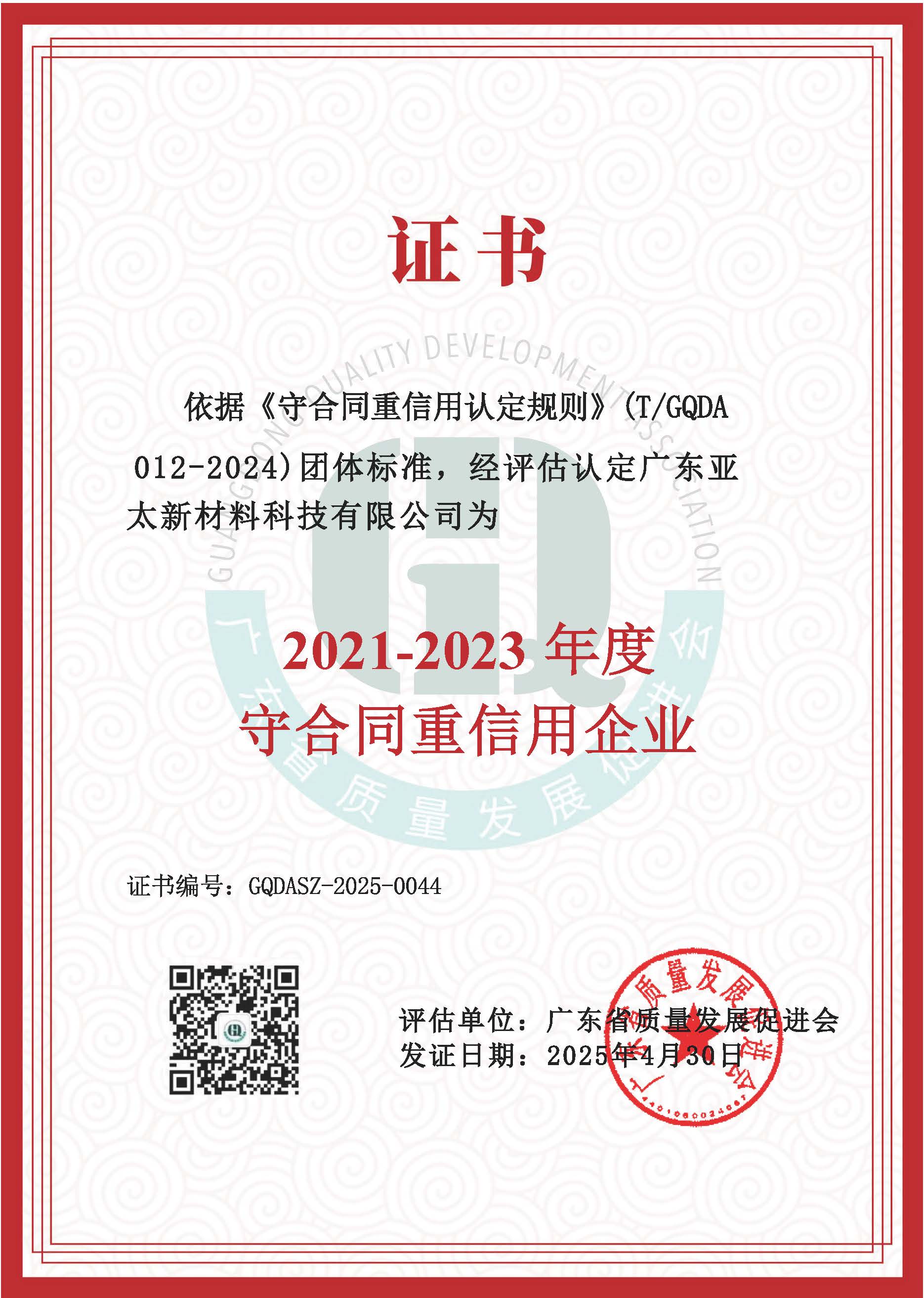 此次获评是鼓励更是责任,未来将持续深化诚信体系建设,以更高标准推进技术创新与品质升级,为粤港澳大湾区新材料产业发展树立诚信标杆。